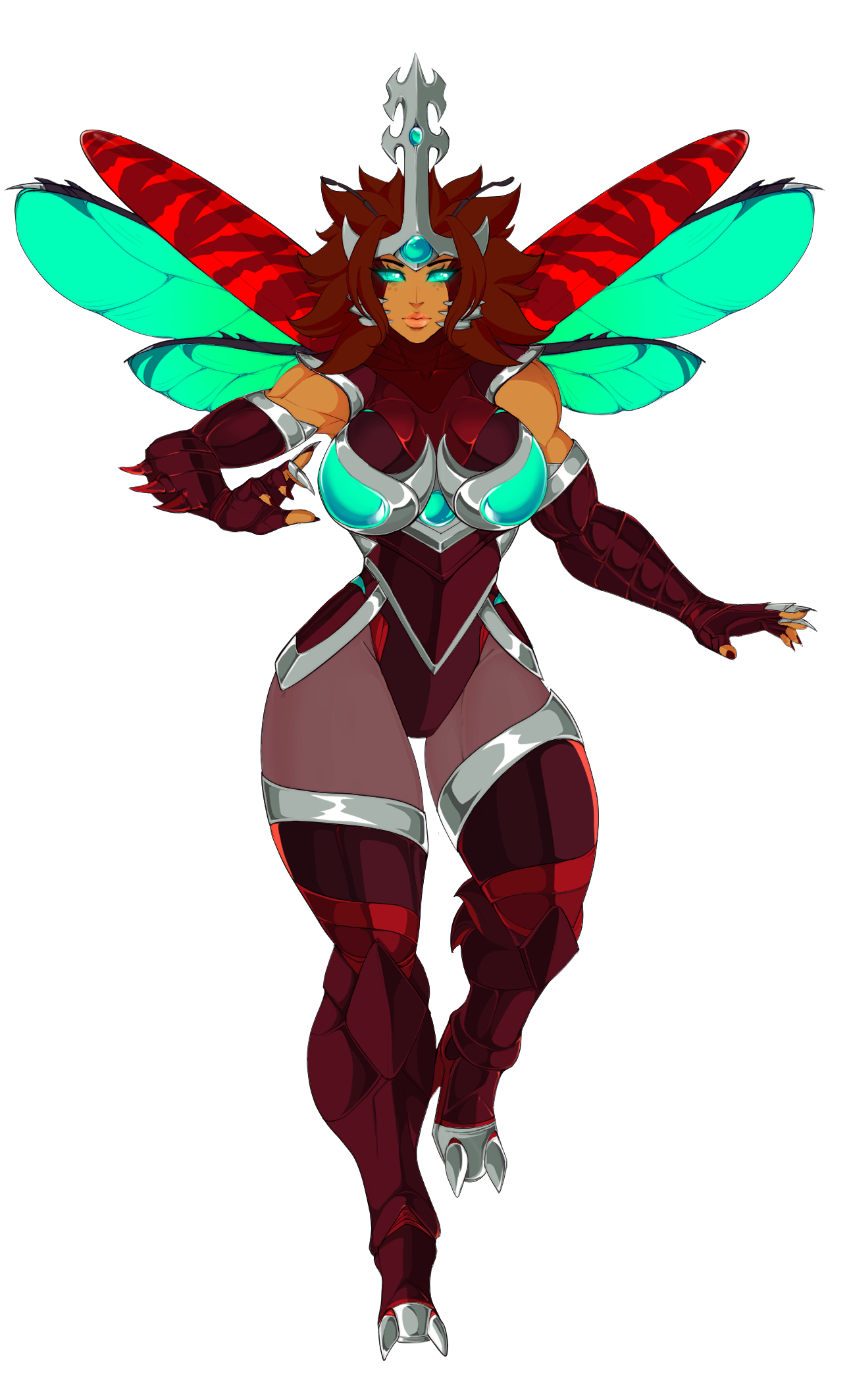 Nola is a former guardian originally born in Seatopia, a massive subterranean realm on the planet, Yammutika. Home to quiet inhabitants for thousands of years.Nola and her twin brother, Meg are the first and only members of a beetle-like insectoid race called "Seatopians."The inhabitants of Seatopia revered the twins as their Gods, as they were divine beings who guarded over land as they grew up. Often seen defending the lands from enemies.In a sudden unfortunate event, Nola and her brother got captured. Both twins being abducted from their home planet and forced to serve as slaves to an alien war queen named Vorticia. After being taken away, they left their home destroyed in ruins.